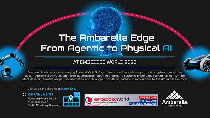 Ambarella, Inc., an edge AI semiconductor company, announced that it will exhibit at Embedded World 2026, taking place March 10-12 in Nuremberg, Germany. At the show, Ambarella’s theme, “The Ambarella Edge: From Agentic to Physical AI,” will anchor live demonstrations that highlight how Ambarella’s AI SoCs, software stack, and developer tools deliver a competitive advantage across a wide range of AI applications—from agentic automation and orchestration to physical AI systems deployed in real-world environments.