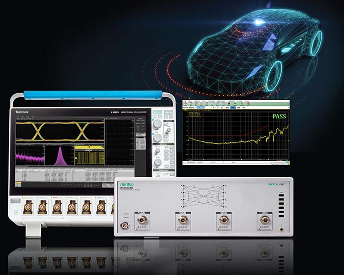 Anritsu announces a comprehensive automotive Ethernet test solution that delivers precise Media Dependent Interface (MDI) return loss and mode conversion measurements for validating 100BASE-T1 and 1000BASE-T1 compliance. By using the Anritsu ShockLine™ MS46524B vector network analyzer (VNA) with the Tektronix® 6 Series MSO oscilloscope, the solution enables engineers to conduct robust, standards-based verification of automotive Ethernet components, including cables, and connectors.