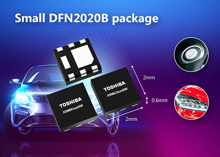 Toshiba announces the launch of five new automotive MOSFET products, designed to offer a combination of space-saving benefits and easy mounting. These N-channel (XSM6K361NW, XSM6K519NW, XSM6K376NW, and XSM6K336NW) and P-channel (XSM6J372NW) MOSFETs are housed in the DFN2020B(WF) package, which features a wettable flank structure.