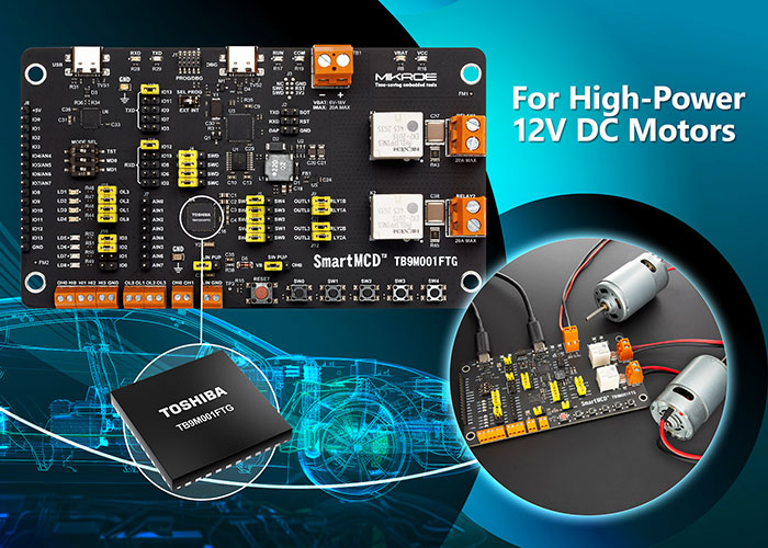 Toshiba has partnered with MIKROE to integrate its SmartMCD™ for dual brushed DC motors into the SmartMCD TB9M001FTG board. The board enables automotive system engineers to design the TB9M001FTG smart motor control driver for automotive applications, including electric sunroofs, wipers, powered windows, and adjustable seats, to streamline the prototyping phase.